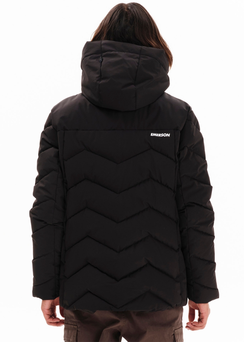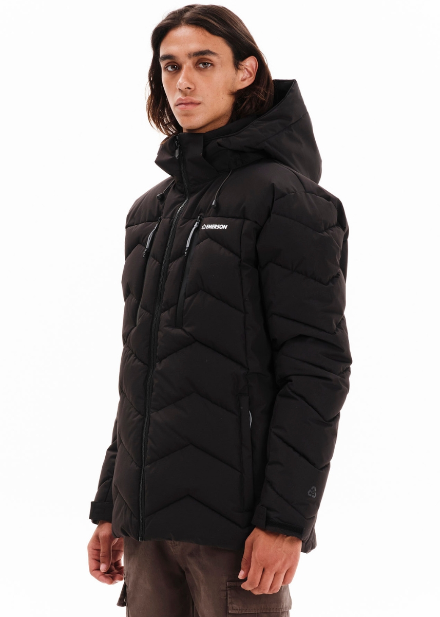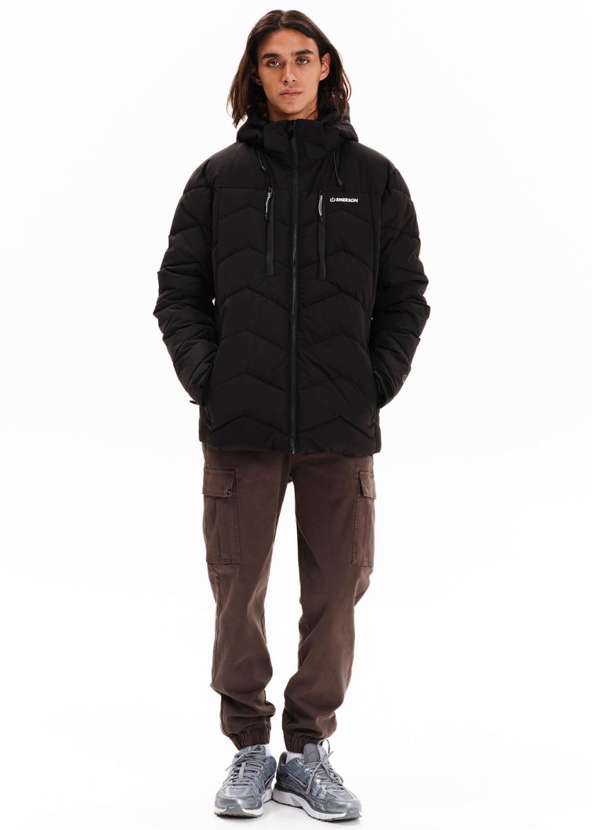 Αυτό το μπουφάν EMERSON puffer μεσαίου βάρους, είναι σχεδιασμένο για να νιώθεις άνετος όλη μέρα. Το γέμισμά του από ανακυκλωμένο συνθετικό πούπουλο SOFEELATE® προσφέρει υψηλή θερμομόνωση, παρόμοια με εκείνη του φυσικού πούπουλου, ενώ το διαπνεόμενο, φιλικό προς το περιβάλλον ύφασμα εξασφαλίζει προστασία από τη βροχή και τον κρύο αέρα. Οι πολλαπλές τσέπες του κρατούν όλα τα απαραίτητα αντικείμενά σου οργανωμένα και ασφαλή. Η αποσπώμενη κουκούλα, οι μανσέτες και το τελείωμα έχουν ελαστική ταινία για καλύτερη εφαρμογή. Φόρεσέ το με το αγαπημένο σου φούτερ EMERSON για μια καθημερινή σπορ εμφάνιση.