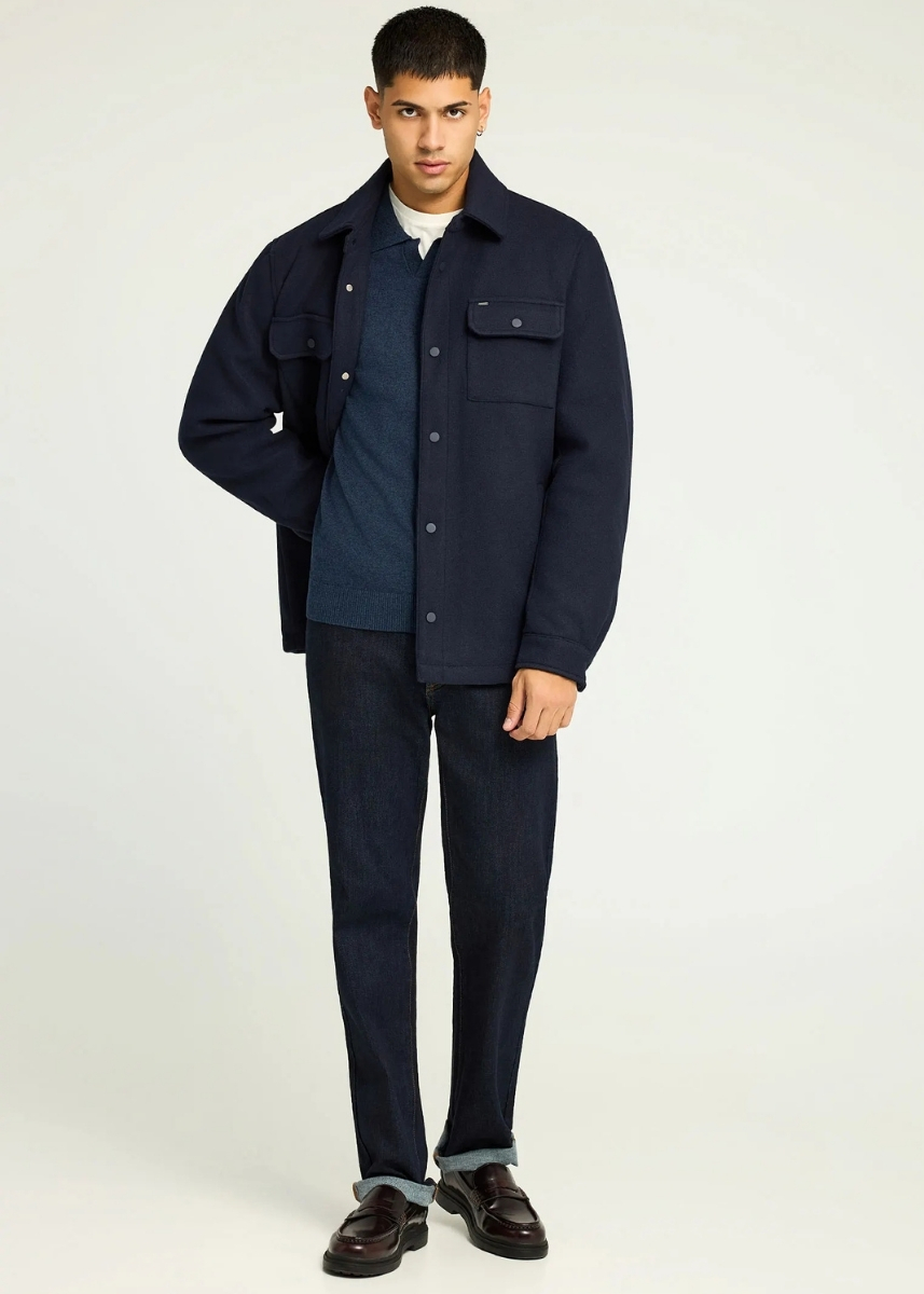 Ιδανικό για φθινόπωρο και χειμώνα, αυτό το ανδρικό τζάκετ FUNKY BUDDHA σε navy χρώμα προσφέρει κανονική εφαρμογή και μήκος μέχρι τους γοφούς. Η τετράγωνη πλάτη και η ευθεία γραμμή εξασφαλίζουν άνεση, ενώ ο γιακάς και τα μακριά μανίκια προσφέρουν ζεστασιά. Ολοκληρώνεται με τσέπες με καπάκι και διακριτική πινακίδα λογοτύπου. Συνδυάστε με τζιν και μποτάκια για relaxed καθημερινό look ή με παντελόνι ραφής και πουκάμισο για πιο κομψή εμφάνιση.