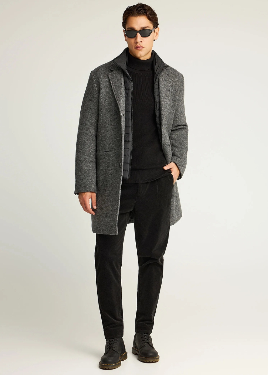 Αυτό το ανδρικό παλτό είναι η επιτομή της κομψότητας για τη φθινοπωρινή και χειμερινή σεζόν. Κατασκευασμένο από πλεκτό ύφασμα με μείγμα μαλλιού και εσωτερική επένδυση, προσφέρει άνεση και θερμότητα με διαχρονικό στυλ. Διαθέτει πέτο γιακά, κουμπωτό κλείσιμο και πλαϊνές φιλάριστες τσέπες για πρακτικότητα χωρίς να θυσιάζει την αισθητική του. Με μονόχρωμο φινίρισμα και κανονική γραμμή, είναι ιδανικό για smart casual εμφανίσεις. Συνδυάστε το με σκούρο παντελόνι και δερμάτινα παπούτσια για ένα polished, urban look.
