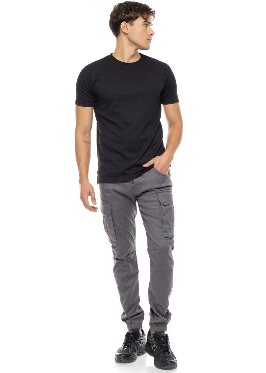 Ανδρικό παντελόνι COVER με λάστιχο στο τελείωμα και δύο cargo τσέπες στα πλάγια. Είναι κατασκευασμένο από μαλακό ύφασμα για τέλεια και άνετη εφαρμογή.