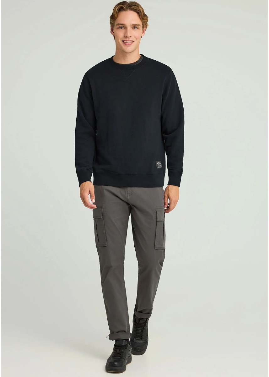 Μονόχρωμο ανδρικό cargo παντελόνι FUNKY BUDDHA σε ίσια εφαρμογή με στενή γραμμή, ιδανικό για όλες τις εποχές – από φθινόπωρο και χειμώνα μέχρι άνοιξη και καλοκαίρι. Κατασκευασμένο από βαμβάκι με φυσικές ίνες, προσφέρει άνεση και σύγχρονο streetwear χαρακτήρα. Η μέση μέτριου ύψους με θηλιές για ζώνη, το κλείσιμο με κουμπιά και φερμουάρ και η λεία ματ υφή ενισχύουν τον minimal σχεδιασμό του. Συνδυάστε το με ένα casual τοπ ή φούτερ και αθλητικά sneakers για μια άνετη εμφάνιση, ιδανική για την πόλη ή τις υπαίθριες δραστηριότητες.