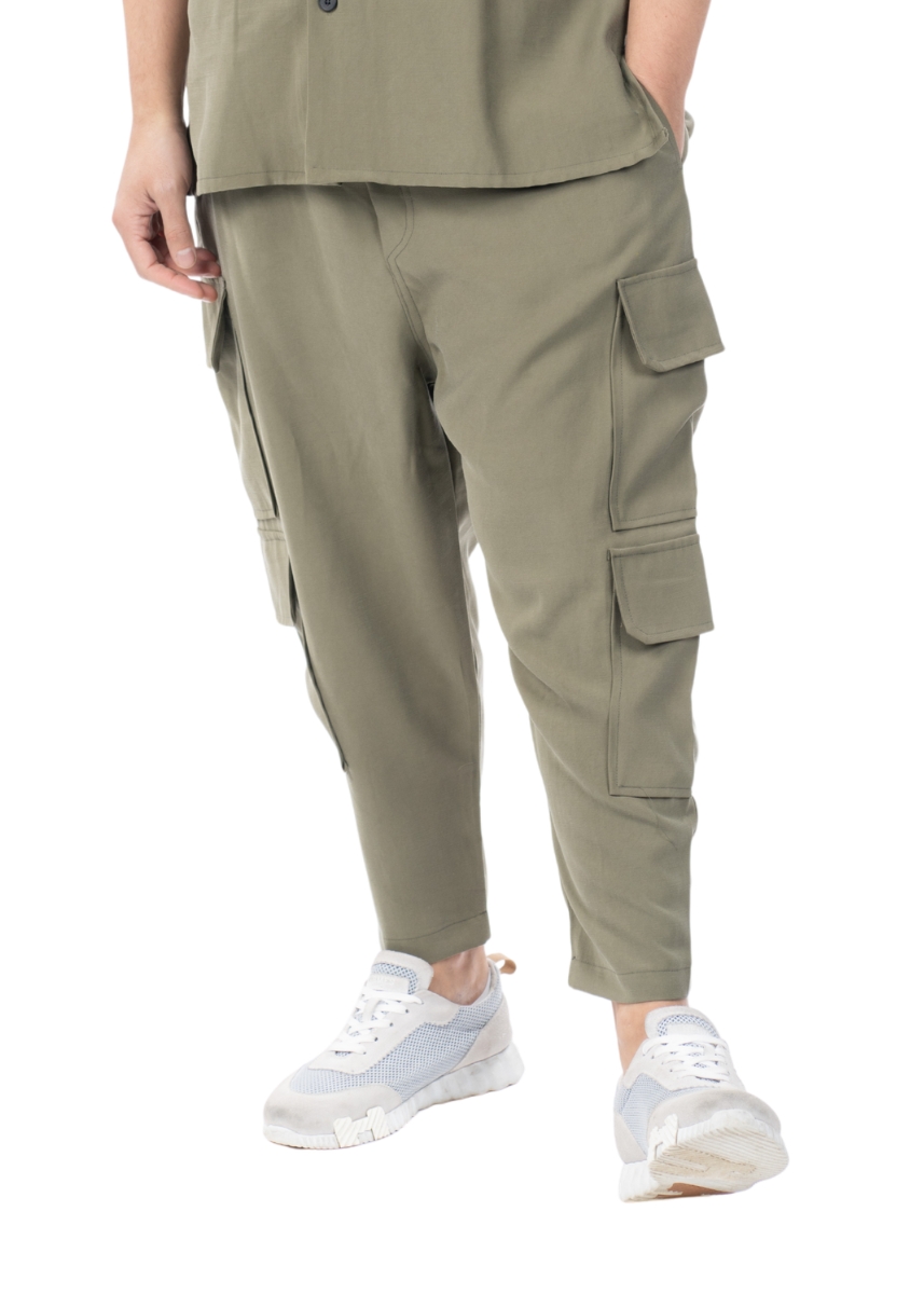 Ανδρικό cropped παντελόνι TWIN BLACK με στενό τελείωμα με πιέτα στο πίσω μέρος και cargo τσέπες. Διαθέτει λάστιχο στη μέση και είναι κατασκευασμένο από μαλακό ύφασμα για άνεση.
