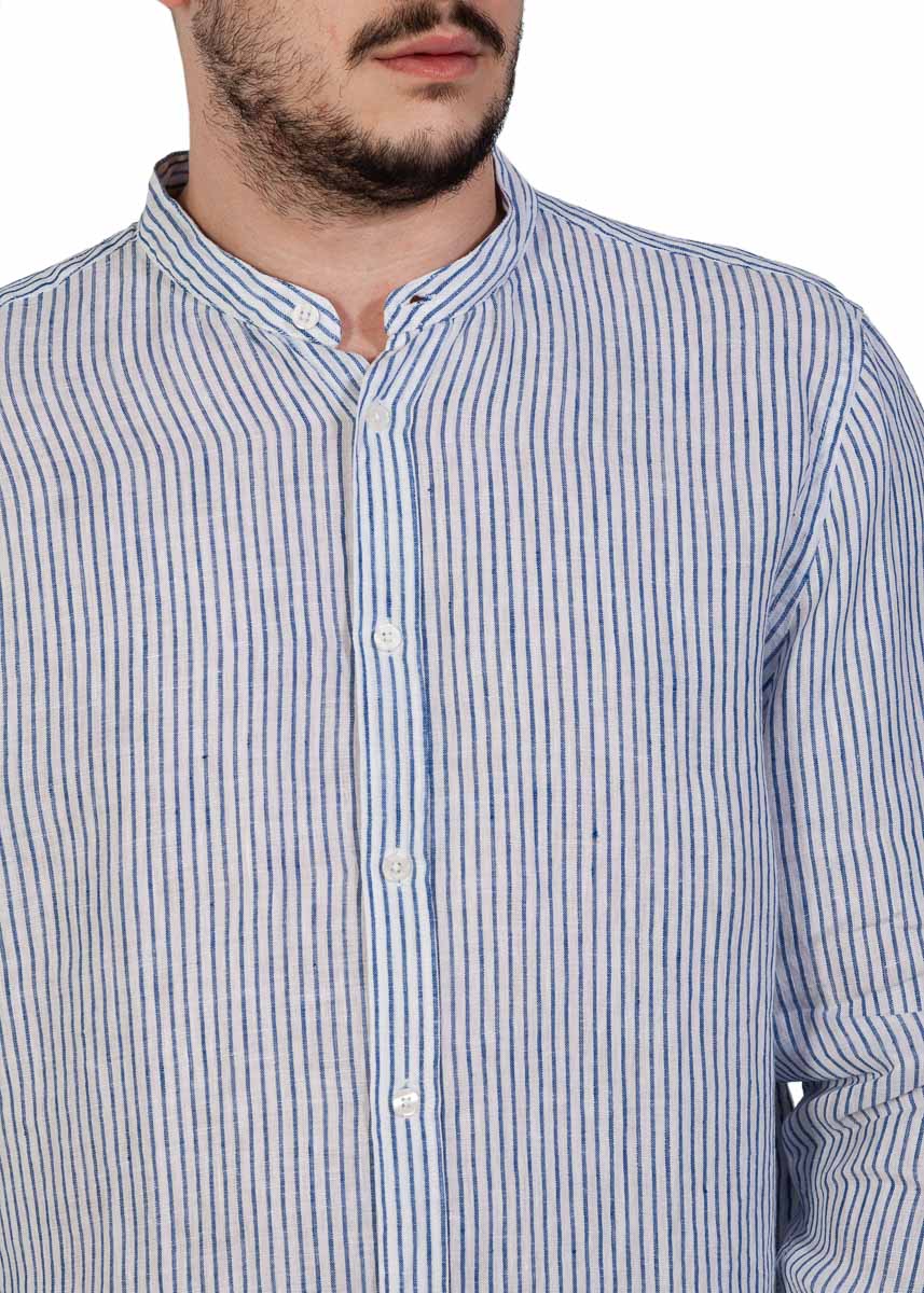 Μακρυμάνικο ριγέ πουκάμισο FUNKY BUDDHA από 100% λινο ύφασμα σε κανονική γραμμή. Διαθέτει μάο γιακά.