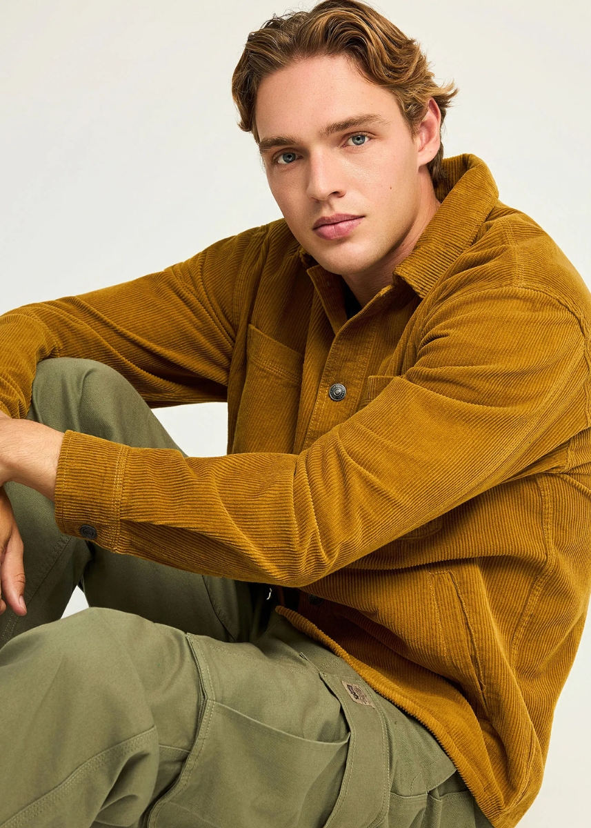 Ανδρικό κοτλέ overshirt πουκάμισο FUNKY BUDDHA ιδανικό για τις ψυχρές εποχές. Κατασκευασμένο από 100% βαμβάκι σε μονοχρωματικούς τόνους, συνδυάζει κλασικό ίσιο γιακά με κουμπιά, μακριά μανίκια με μανσέτες και πρακτικές τσέπες στο μπροστινό μέρος. Η κανονική εφαρμογή και η ίσια κοπή προσφέρουν άνεση και ευελιξία, καθιστώντας το ιδανικό τόσο για καθημερινές εμφανίσεις όσο και για πιο προσεγμένα σύνολα. Συνδυάστε το με τζιν και δερμάτινες μπότες για χαλαρό urban στυλ ή με παντελόνι για μια πιο εκλεπτυσμένη διάθεση.