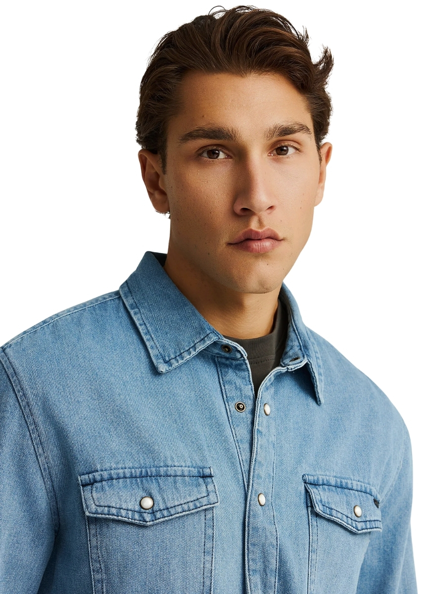 Ανδρικό denim πουκάμισο FUNKY BUDDHA σε μπλε απόχρωση, με κανονική εφαρμογή και κατασκευή από 100% βαμβάκι για φυσική αίσθηση και άνεση. Ο κλασικός γιακάς και η καθαρή μονή στρώση προσδίδουν διαχρονικό χαρακτήρα, ενώ η κάλυψη πλάτης ενισχύει τη δομημένη γραμμή του. Ένα κομμάτι που φοριέται όλες τις εποχές, ιδανικό για χαλαρές αλλά περιποιημένες εμφανίσεις. Συνδυάστε το με ουδέτερα chinos ή τζιν και ολοκληρώστε το look με sneakers για urban στυλ ή loafers για μια πιο εκλεπτυσμένη προσέγγιση.