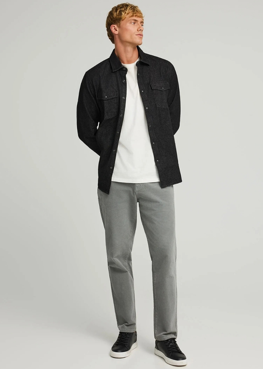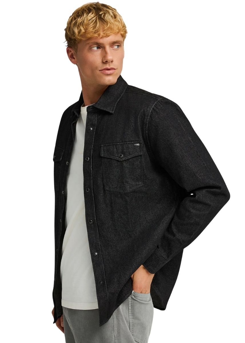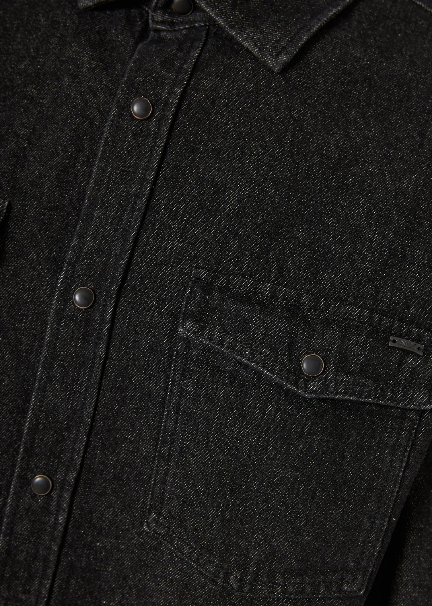 Ιδανικό για τη φθινοπωρινή και χειμερινή περίοδο, αυτό το ανδρικό τζιν πουκάμισο FUNKY BUDDHA κανονικής εφαρμογής σε σκούρους, μονοχρωμικούς τόνους διαθέτει κλασικό γιακά με ευθεία μύτη και είναι κατασκευασμένο από ύφασμα τζιν/σαμπρέ με ύφανση twill. Μακριά μανίκια με καρπούς μονής μανσέτας, ίσιο στρίφωμα και τσέπες με καπάκι ολοκληρώνουν τον πρακτικό σχεδιασμό. Τα κουμπώματα σούστες και η επίπεδη ματ υφή του το κάνουν ιδανικό για να το συνδυάσετε με casual σκοτεινά παντελόνια και μπότες για μια χαλαρή αλλά στιλάτη εμφάνιση.