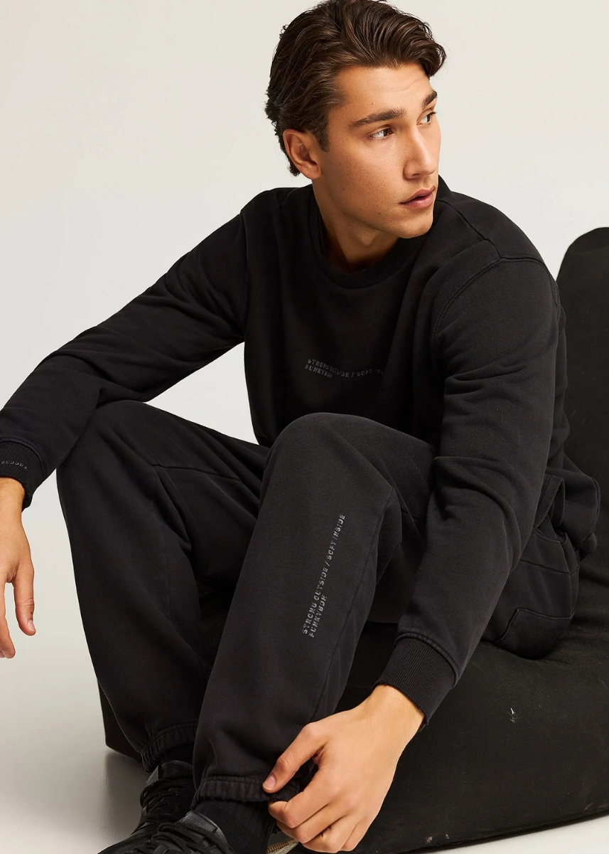 Ανδρικό παντελόνι φόρμας FUNKY BUDDHA σε athleisure ύφος, ιδανικό για το φθινόπωρο και τον χειμώνα. Με slim-fit εφαρμογή, κωνικό τελείωμα και μήκος μέχρι τον αστράγαλο, προσφέρει κομψή αλλά άνετη σιλουέτα. Κατασκευασμένο από 100% βαμβάκι με ματ υφή, εξασφαλίζει απαλή αίσθηση και φυσική διαπνοή. Διαθέτει ελαστική μέση με κορδόνι ρύθμισης, ελαστικό τελείωμα στα μπατζάκια και πρακτικές τσέπες τύπου patch και slash για λειτουργικότητα. Το διακριτικό γραφικό print και το τυπωμένο λογότυπο ολοκληρώνουν το μοντέρνο look. Συνδύασέ το με casual μπλούζα ή φούτερ και sneakers για ένα χαλαρό, καθημερινό στυλ με urban χαρακτήρα.