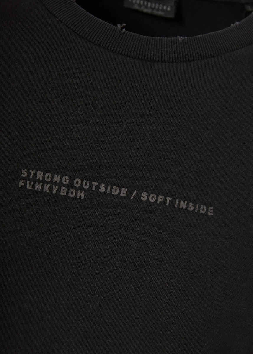 Ανδρικό φούτερ FUNKY BUDDHA με στρογγυλή λαιμόκοψη, κατασκευασμένο από 100% βαμβάκι. Σε μονόχρωμους τόνους, χωρίς γιακά, αυτό το καθημερινό κομμάτι διαθέτει ευθύγραμμο στρίφωμα και μακριά μανίκια με ριμπ μανσέτες, προσφέροντας άνεση και κομψή απλότητα. Το ύφασμα έχει λεία, ματ υφή, ενώ διακριτικά μικρά prints με θέματα και γραφικά προσθέτουν μια casual, μοντέρνα πινελιά. Ιδανικό για φθινόπωρο και χειμώνα, συνδυάζεται εύκολα με τζιν και casual αθλητικά για μια χαλαρή εμφάνιση.