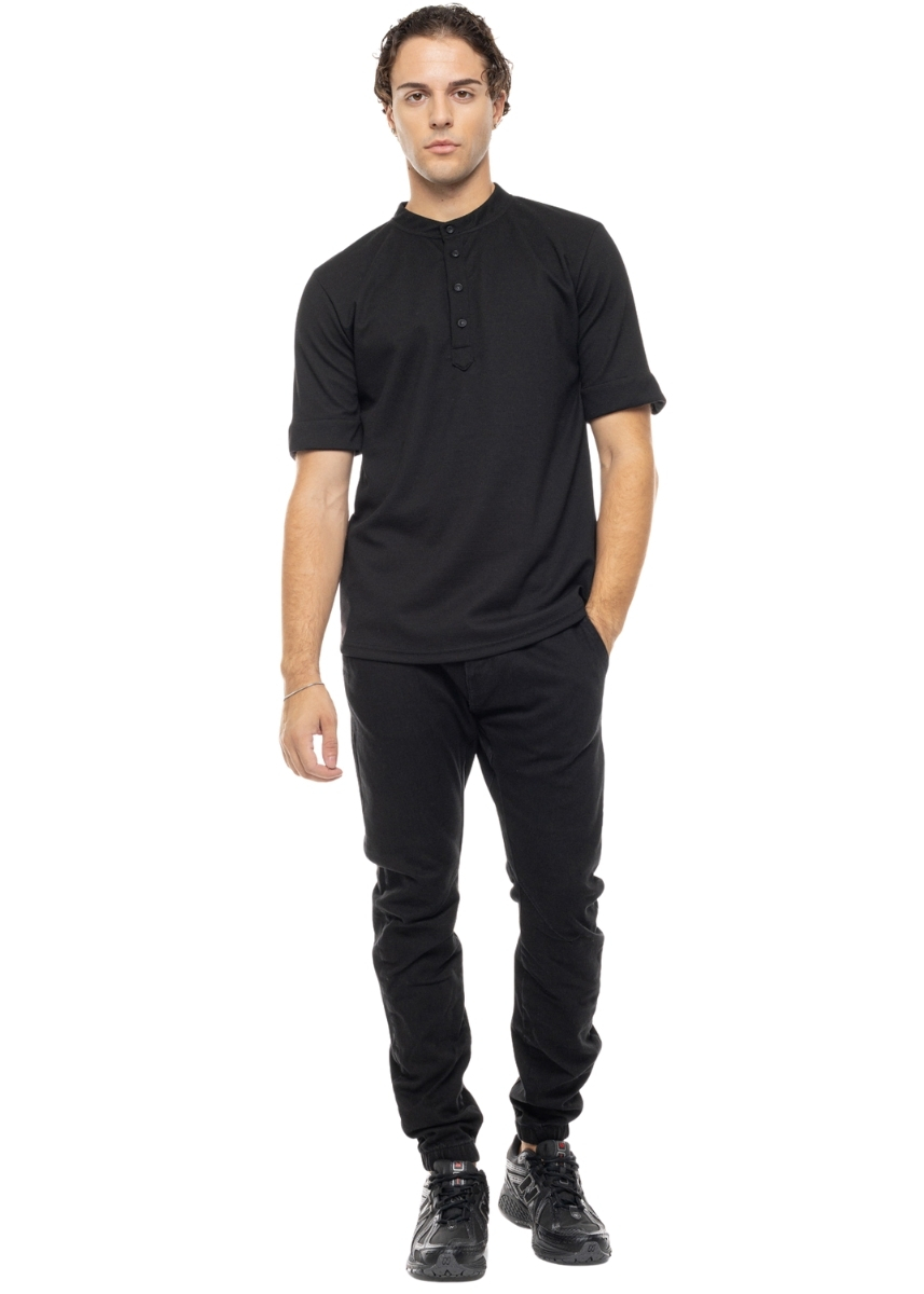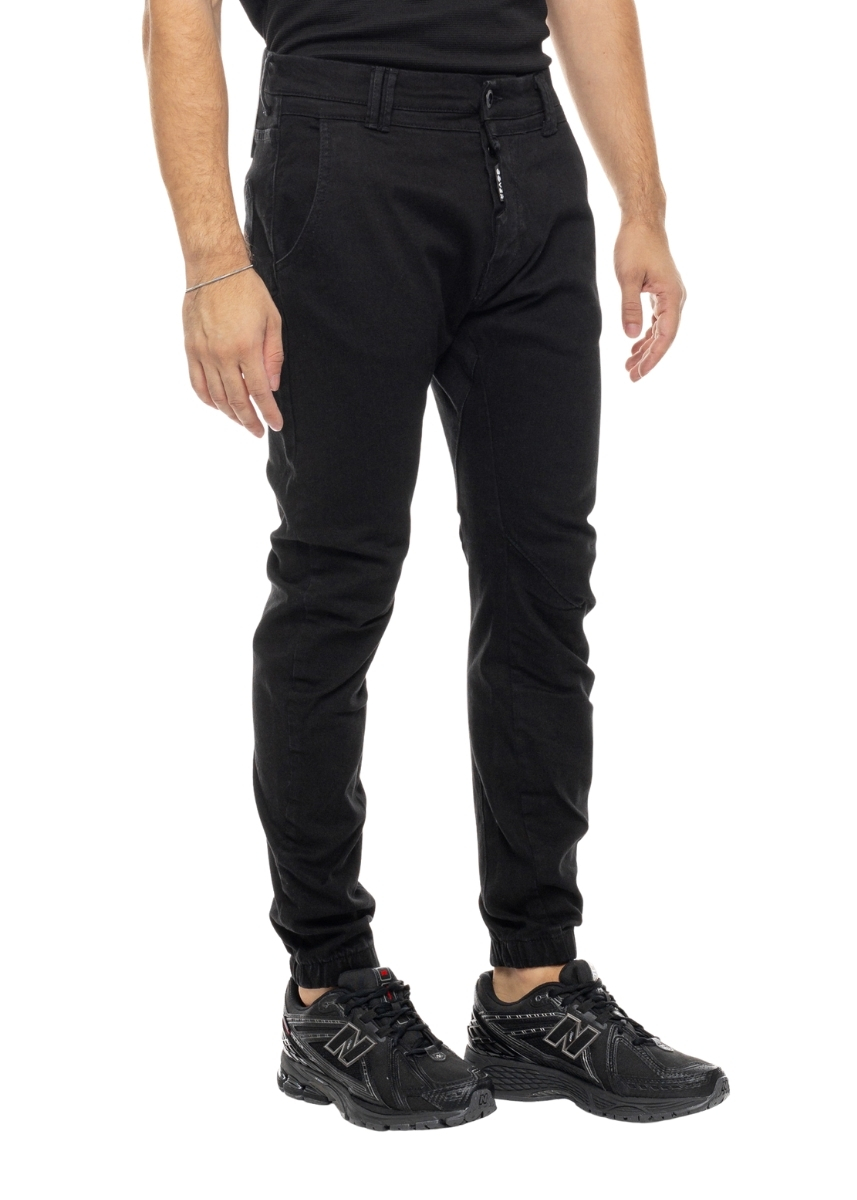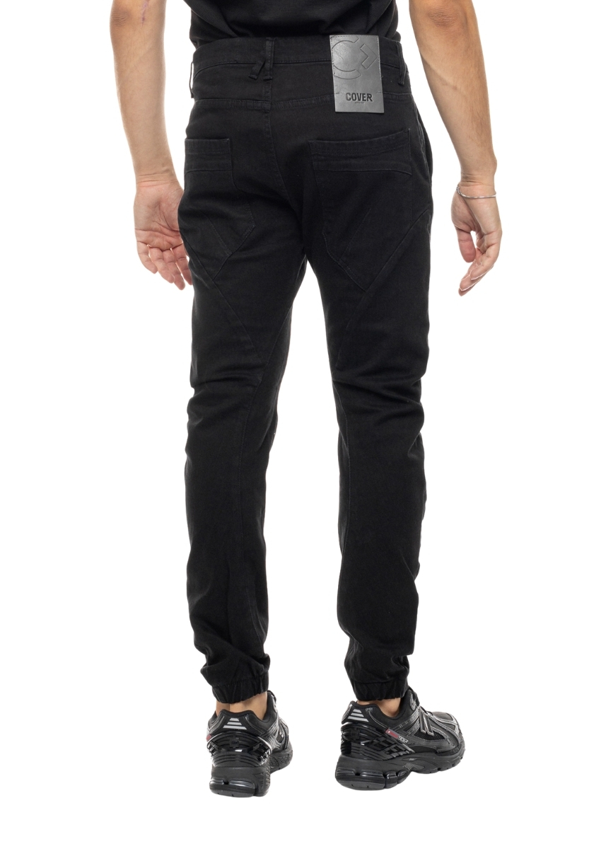 Ανδρικό τζιν Cover Denim σε μαύρο χρώμα με λάστιχο στο τελείωμα. Διαθέτει ραμμένη ετικέτα με το logo στο πίσω μέρος.