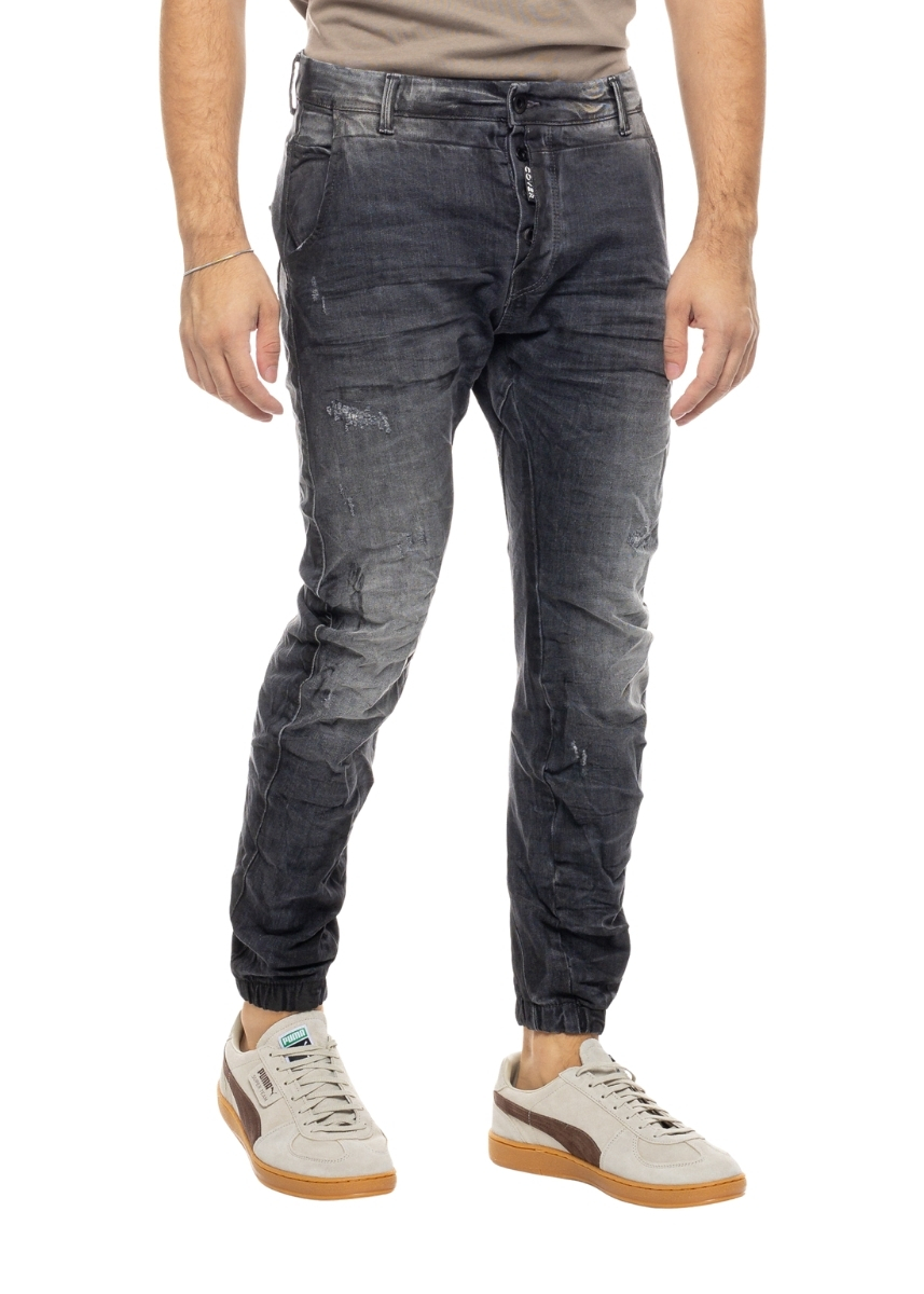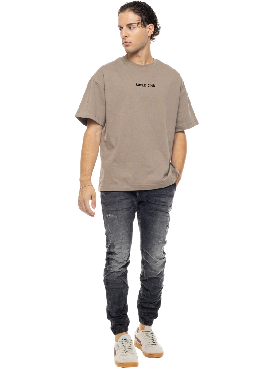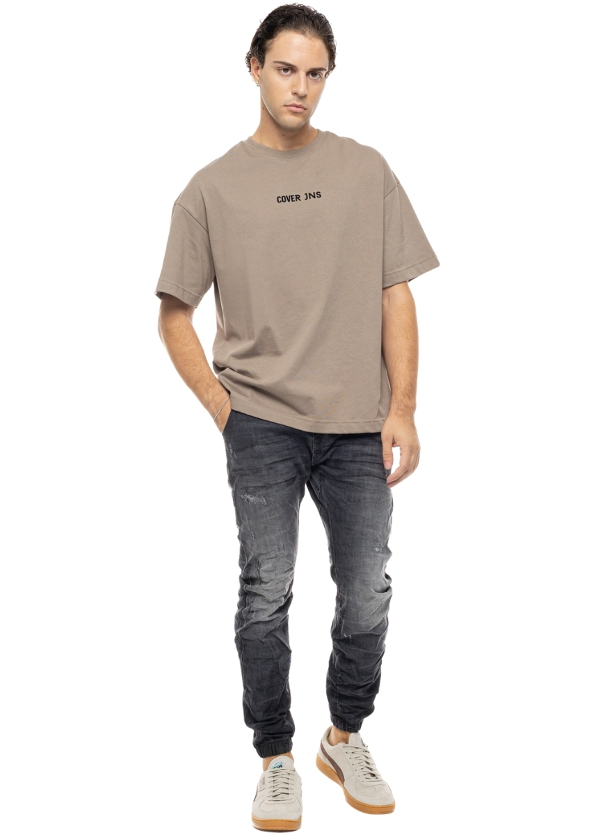 Ανδρικό τζιν Cover Denim με μικρές φθορές μπροστά και λάστιχο στο τελείωμα. Διαθέτει ραμμένη ετικέτα με το logo στο πίσω μέρος.