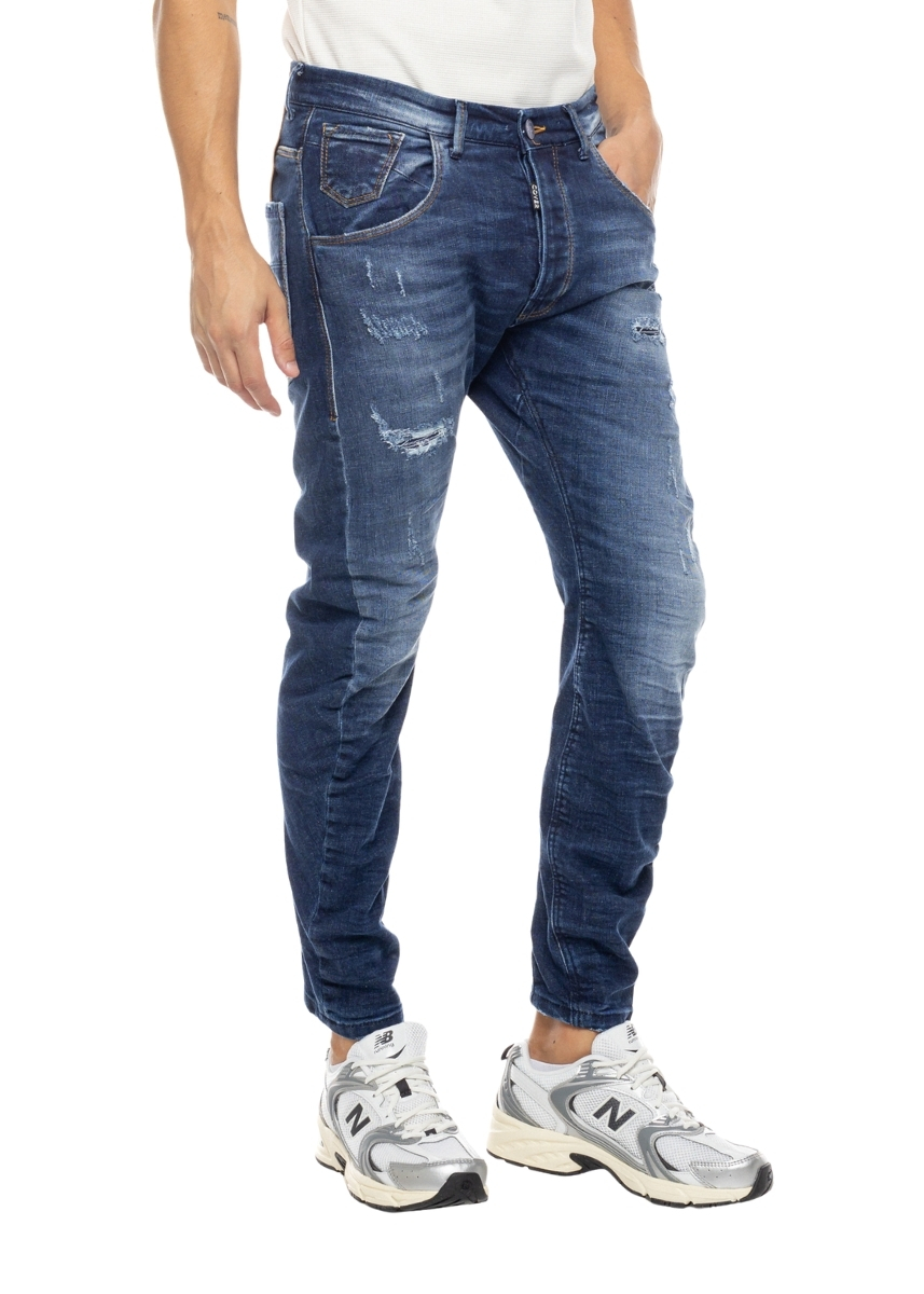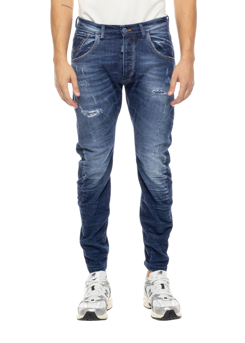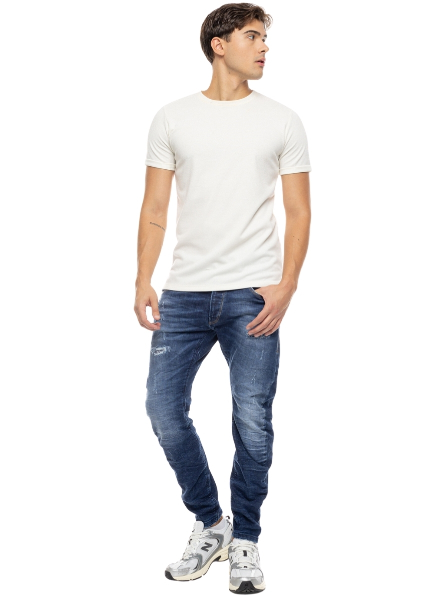 Ανδρικό τζιν Cover Denim με φθορές και ξέβαμμα μπροστά. Διαθέτει ραμμένη ετικέτα με το logo στο πίσω μέρος.