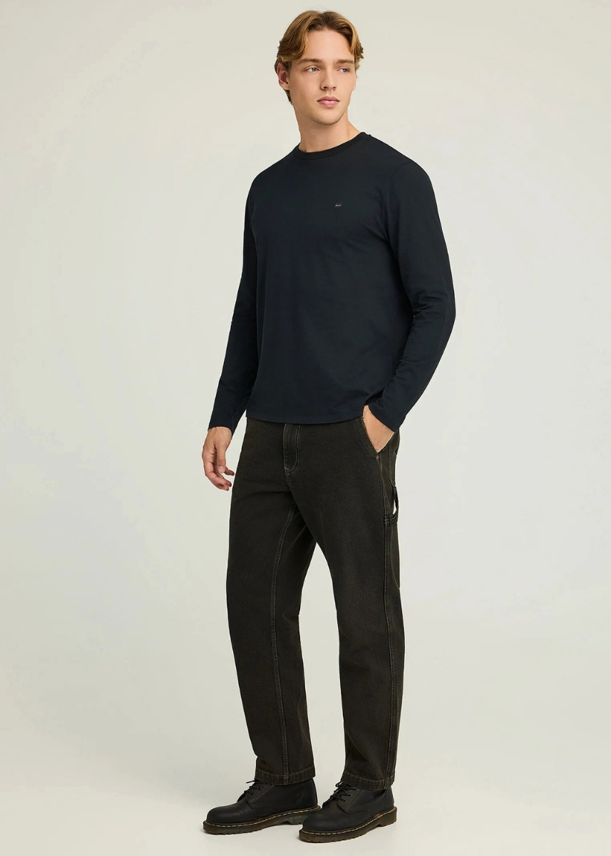 Ανδρική μονόχρωμη μπλούζα FUNKY BUDDHA με στρογγυλή λαιμόκοψη και μακριά μανίκια, φτιαγμένη από 100% βαμβάκι για απόλυτη άνεση. Με κανονική εφαρμογή και ίσια γραμμή στο ύψος των γοφών, είναι ιδανική για το φθινόπωρο και τον χειμώνα. Το απλό αλλά κομψό design την καθιστά απαραίτητο κομμάτι για κάθε ντουλάπα. Συνδυάστε τη με τζιν και sneakers για ένα χαλαρό, effortless look.