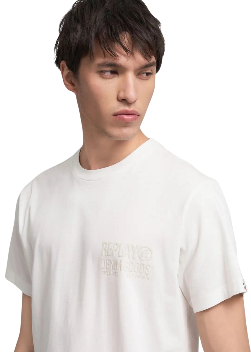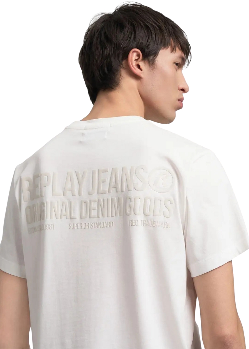 Ανδρικό t-shirt Replay με ανάγλυφη στάμπα στο στήθος και στην πλάτη. Διαθέτει rib στρογγυλή λαιμόκοψη.