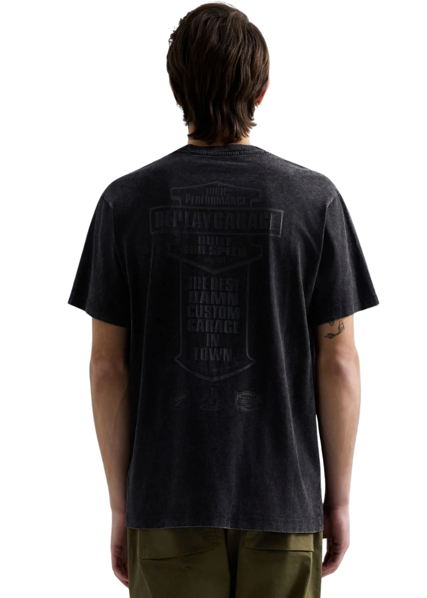 Ανδρικό t-shirt Replay με στάμπα στο στήθος και στην πλάτη σε μαύρο πετροπλυμένο εφέ. Διαθέτει rib στρογγυλή λαιμόκοψη.