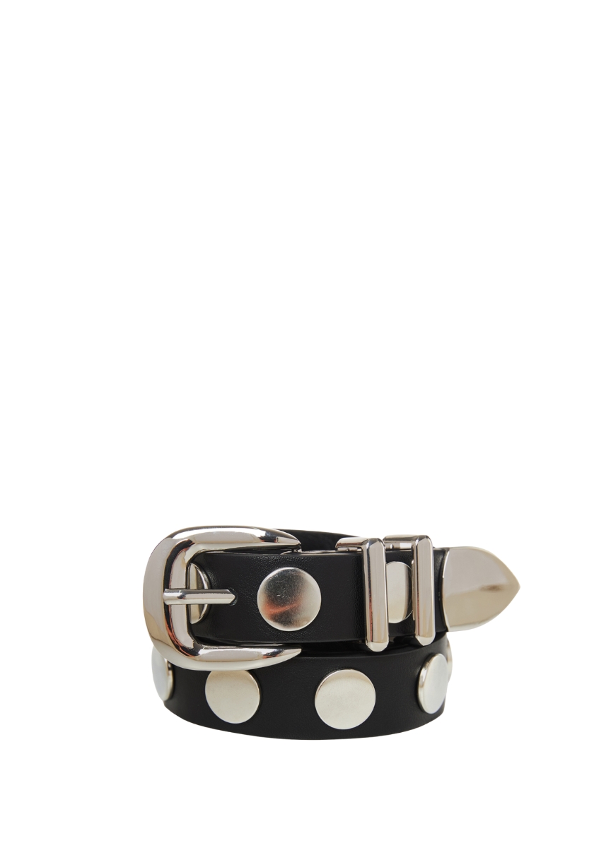 Γυναικεία Funky Buddha ζώνη σε μάυρο χρώμα με μεταλλικό κούμπωμα και τρουκ γύρω γύρω.