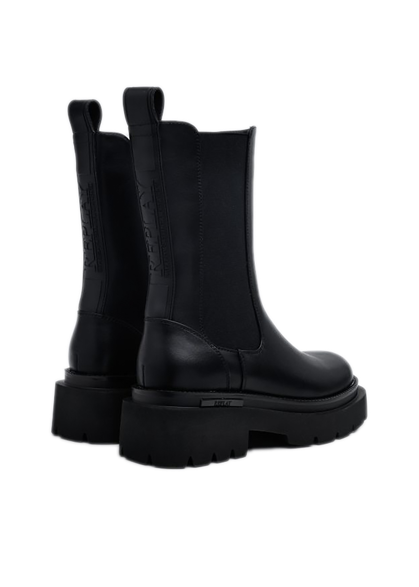 Γυναικεία chunky chelsea μποτάκια REPLAY σε μαύρο χρώμα κατασκευασμένα με eco leather εξωτερικό υλικό και eco warm εσωτερικό. Διαθέτουν φερμουάρ και ελαστικό ένθετο για καλύτερη προσαρμογή, διακριτικό ανάγλυφο λογότυπο πίσω και μια ογκώδη εξωτερική σόλα. Ιδανικό για όλες τις ώρες της ημέρας.