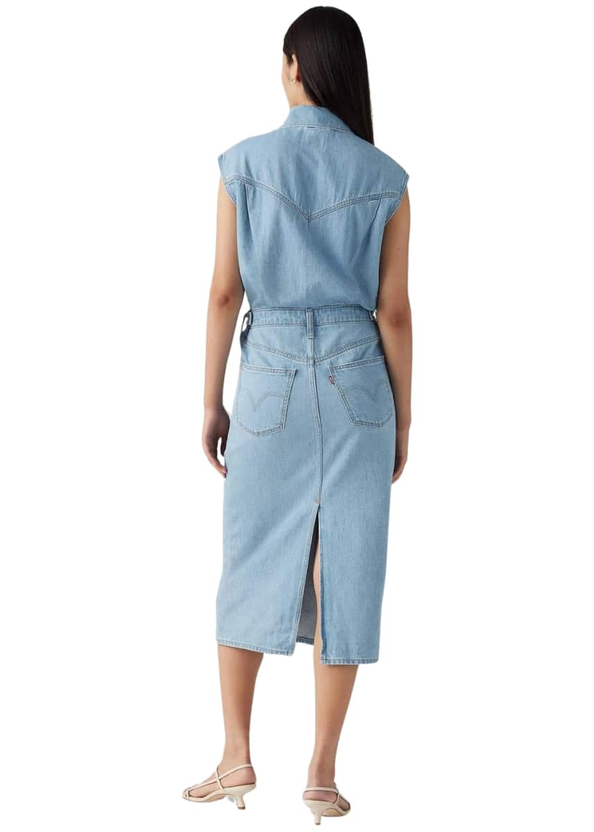Γυναικείο αμάνικο τζιν midi φόρεμα Levi’s® με δύο τσέπες στο στήθος και κλασσικό γιακά.