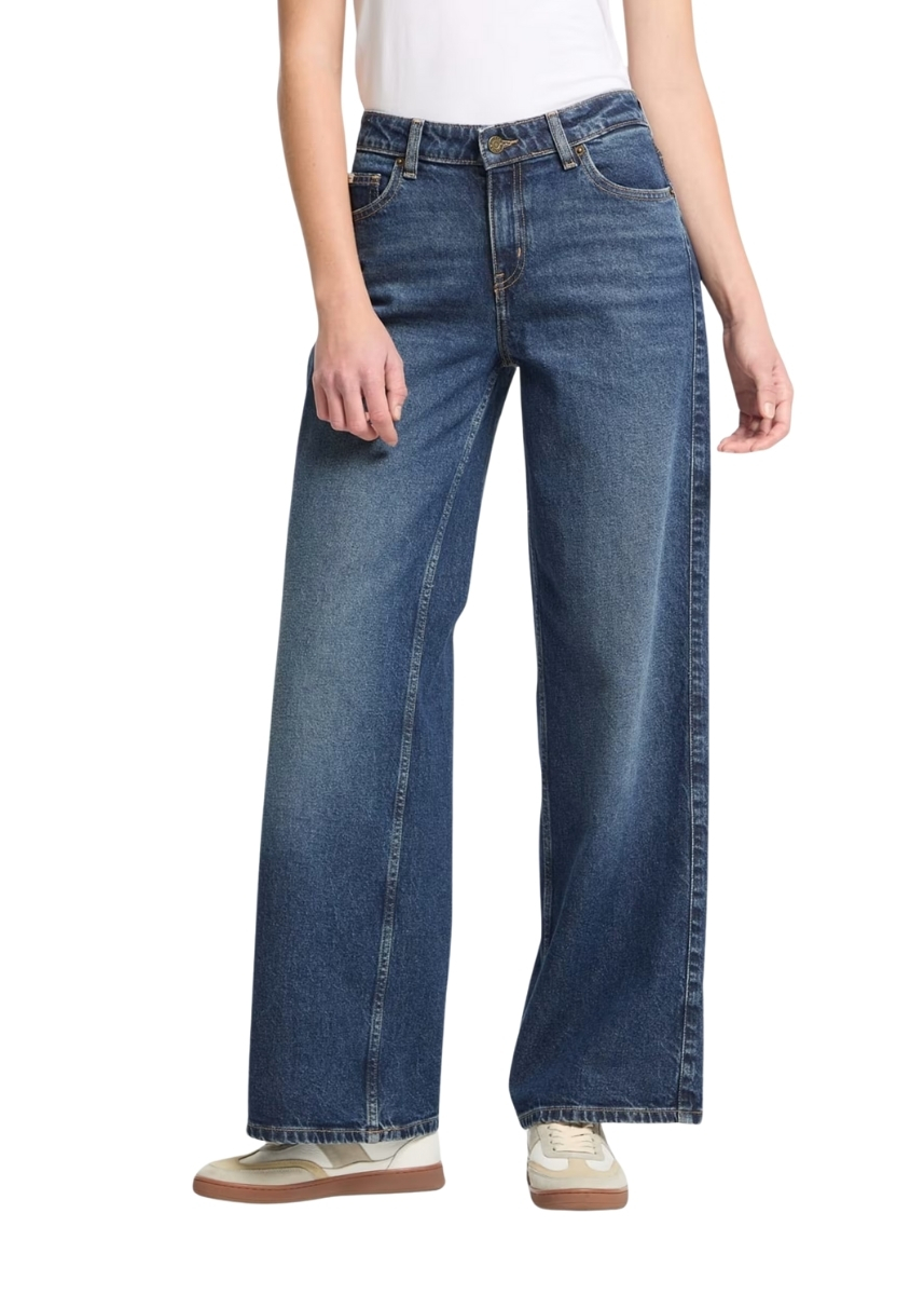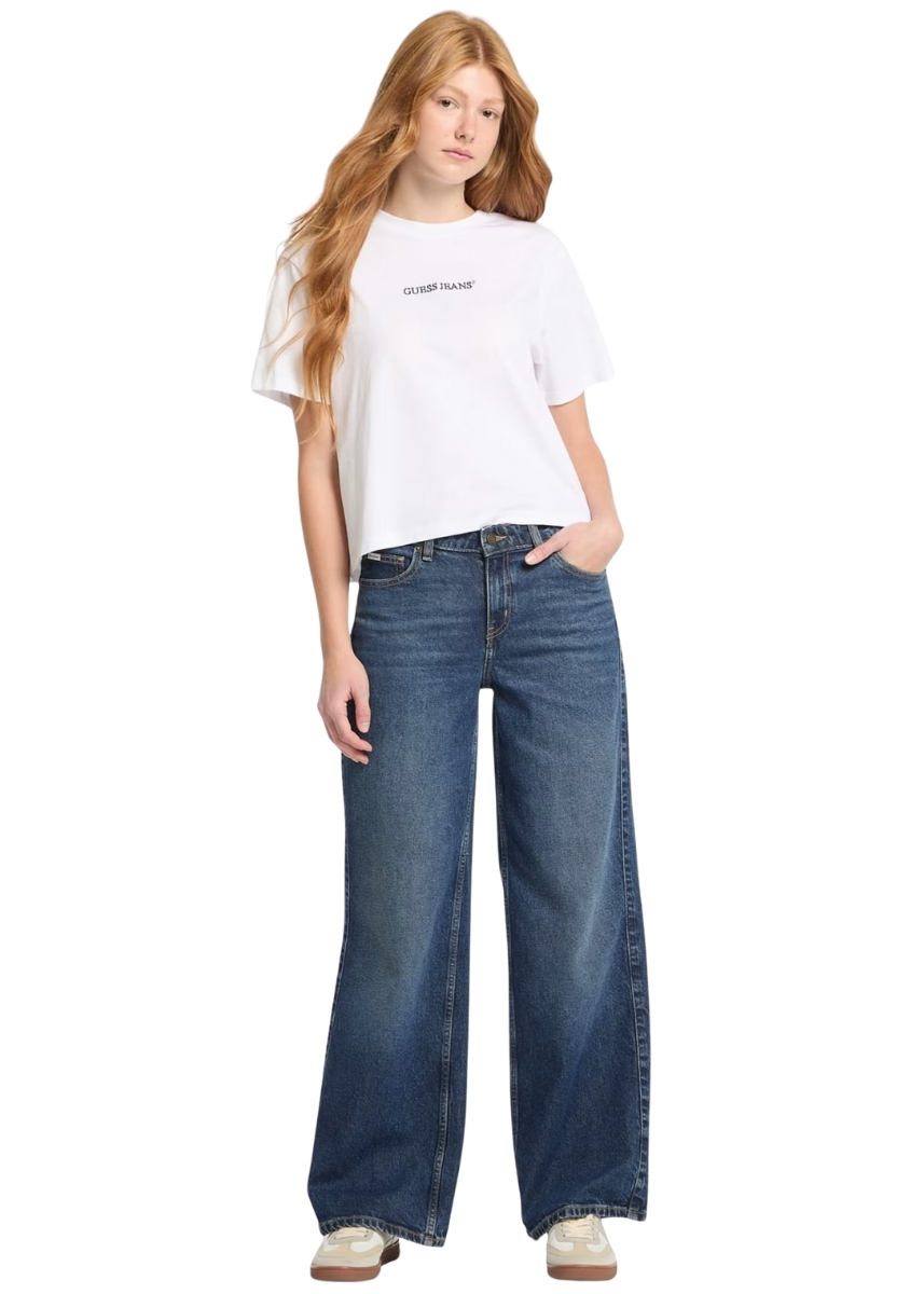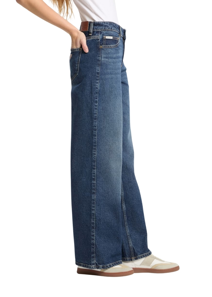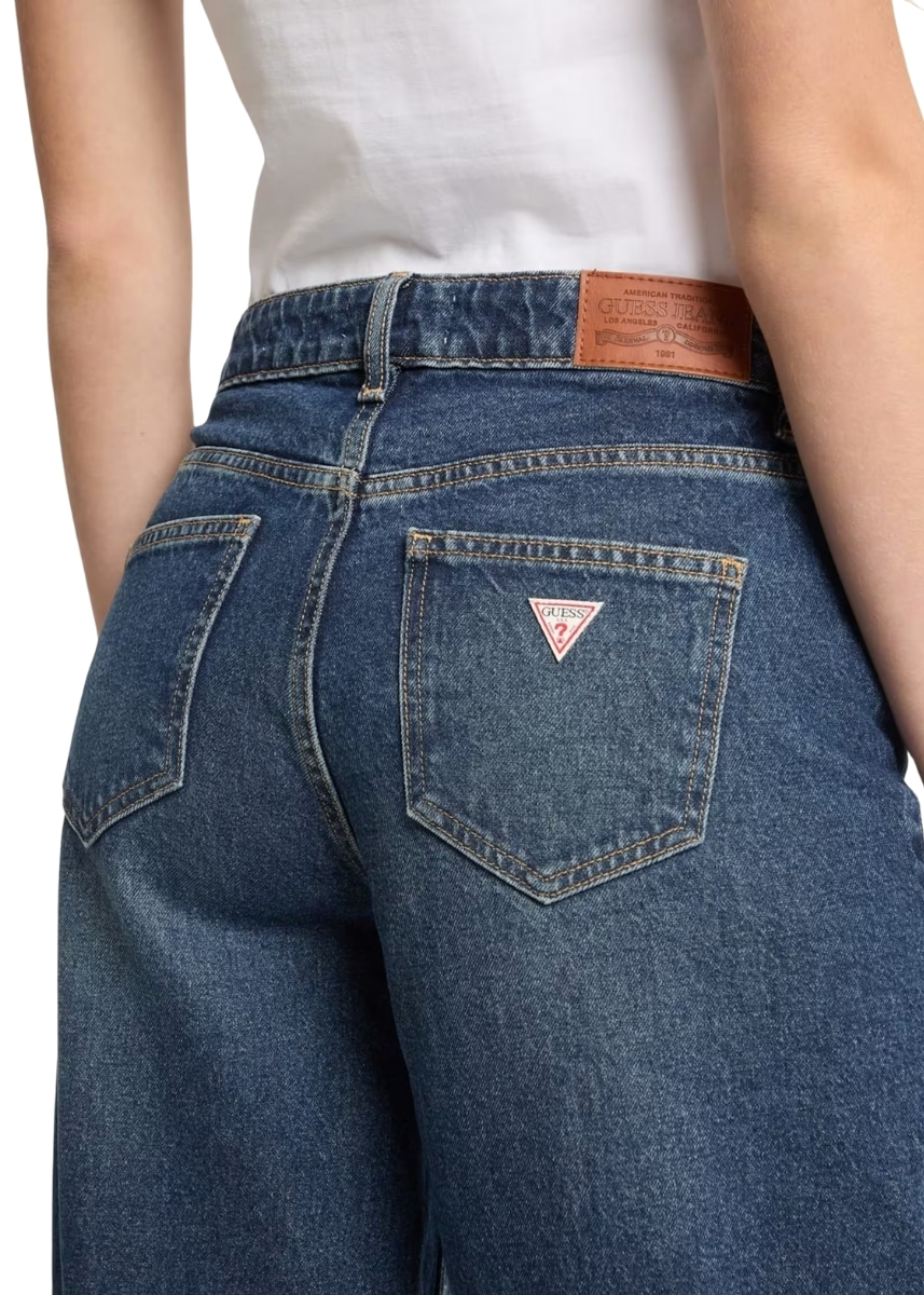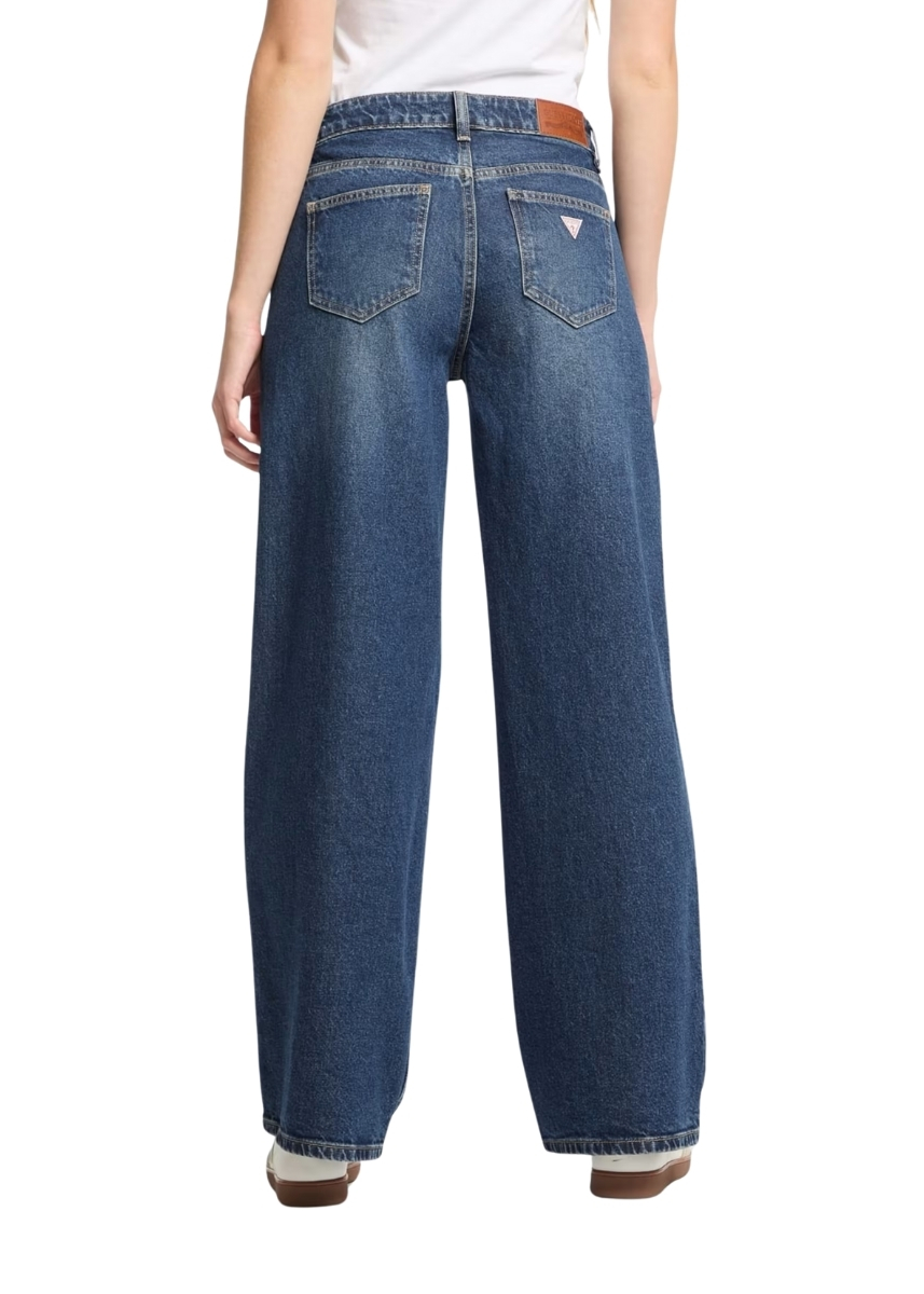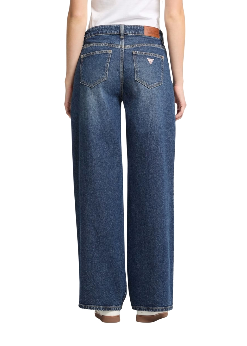 Γυναικείο ψηλόμεσο τζιν GUESS JEANS με φαρδιά μπατζάκια που συνδυάζει μια διαχρονική εμφάνιση με σύγχρονες πινελιές. Είναι κατασκευασμένο με επεξεργασία GUESS AIRWASH™.