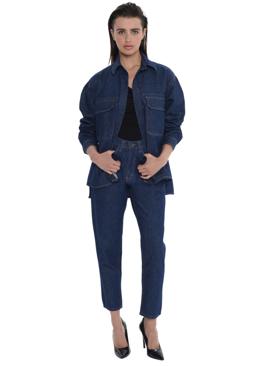 Γυναικείο ψηλόμεσο denim SAC & CO με cropped τελείωμα μέχρι τον αστράγαλο.