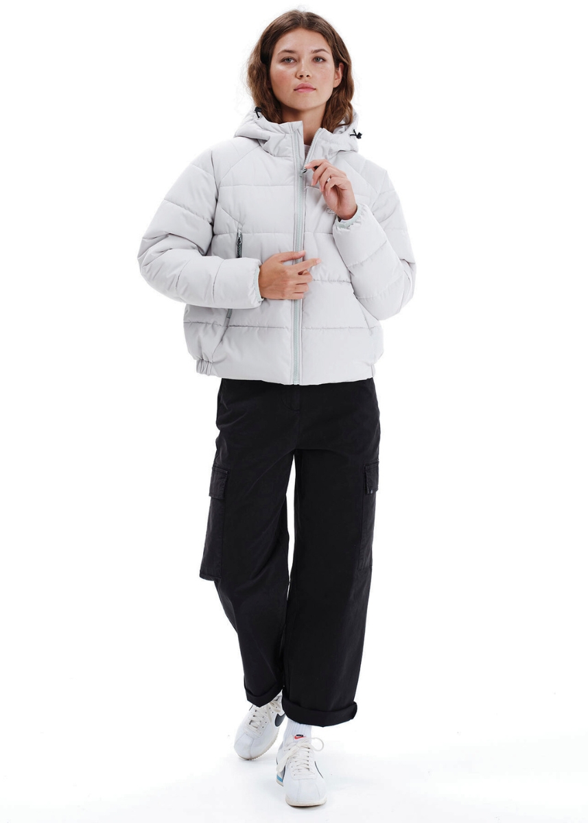 - Ρυθμιζόμενη κουκούλα με ελαστικό κορδόνι