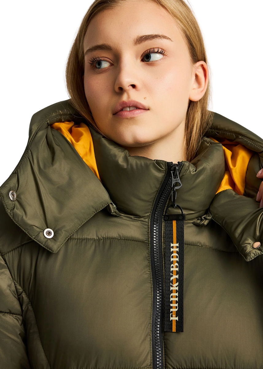 Αυτό το μακρύ puffer μπουφάν FUNKY BUDDHA είναι ένα εντυπωσιακό και ζεστό πανωφόρι. Η κανονική γραμμή (regular fit) σε συνδυασμό με το μήκος του προσφέρουν πλήρη κάλυψη και προστασία από το κρύο. Διαθέτει καπιτονέ υφή και ψηλό λαιμό με αποσπώμενη κουκούλα. Κλείνει με φερμουάρ και είναι ιδανικό για να διατηρήσεις το στυλ σου ακόμα και στις πιο χαμηλές θερμοκρασίες.