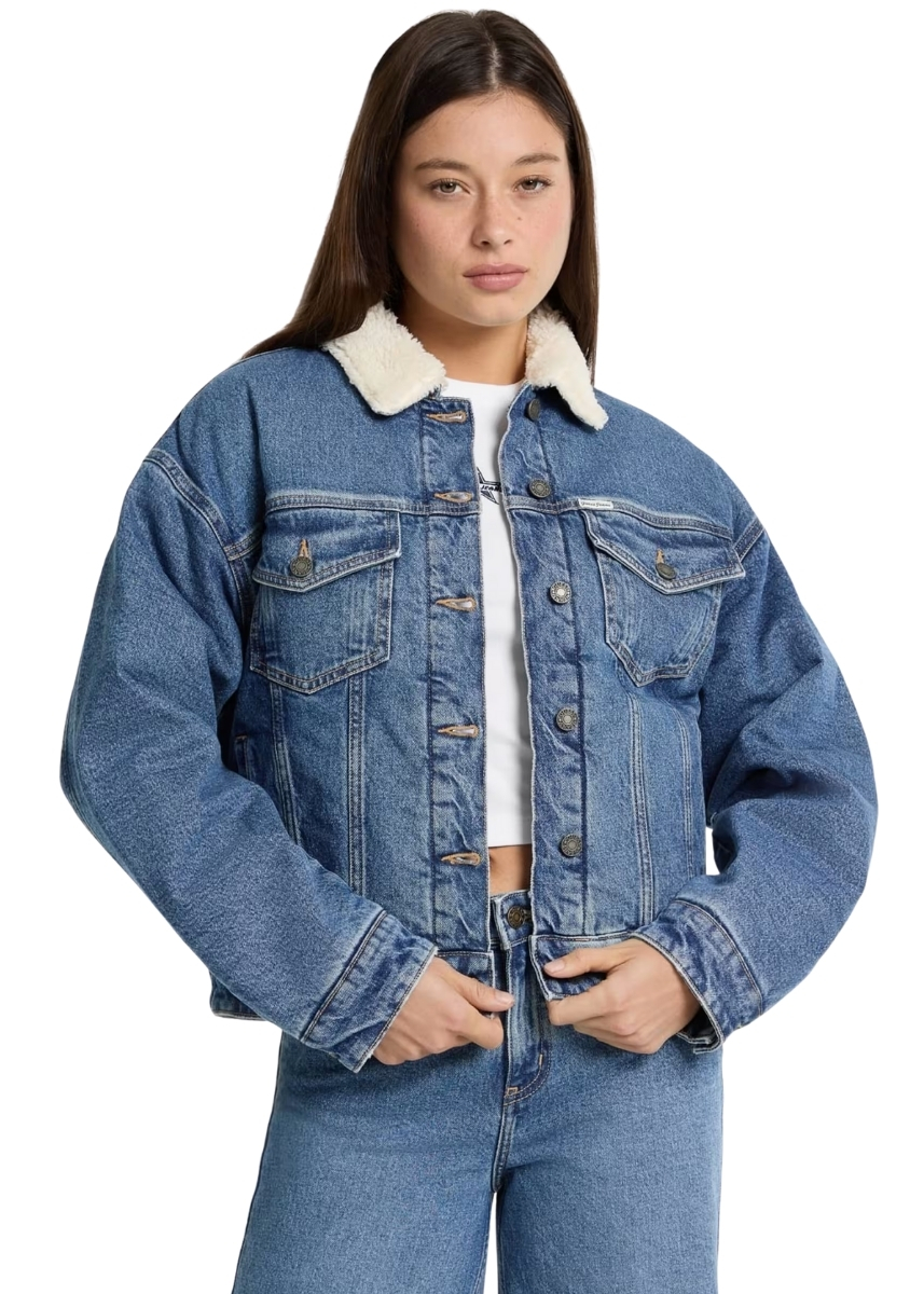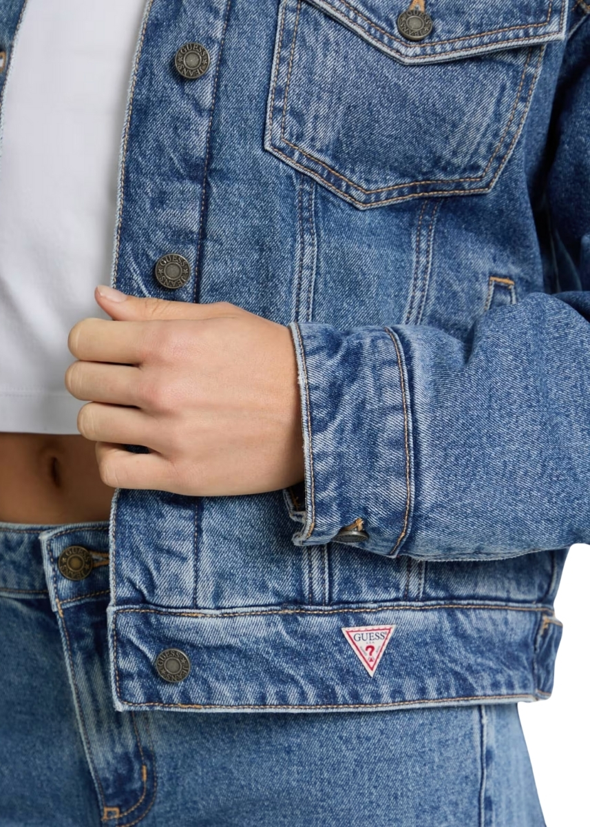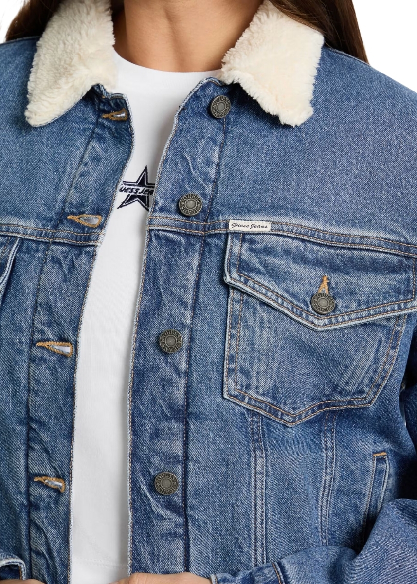 Γυναικείο τζιν μπουφάν GUESS JEANS σε oversized fit με εσωτερική teddy επένδυση.