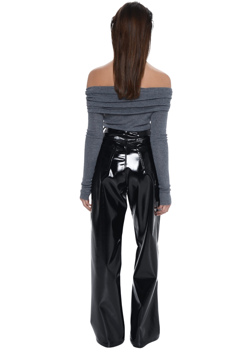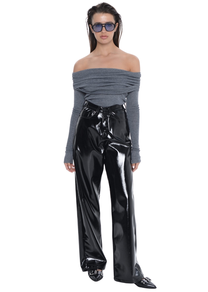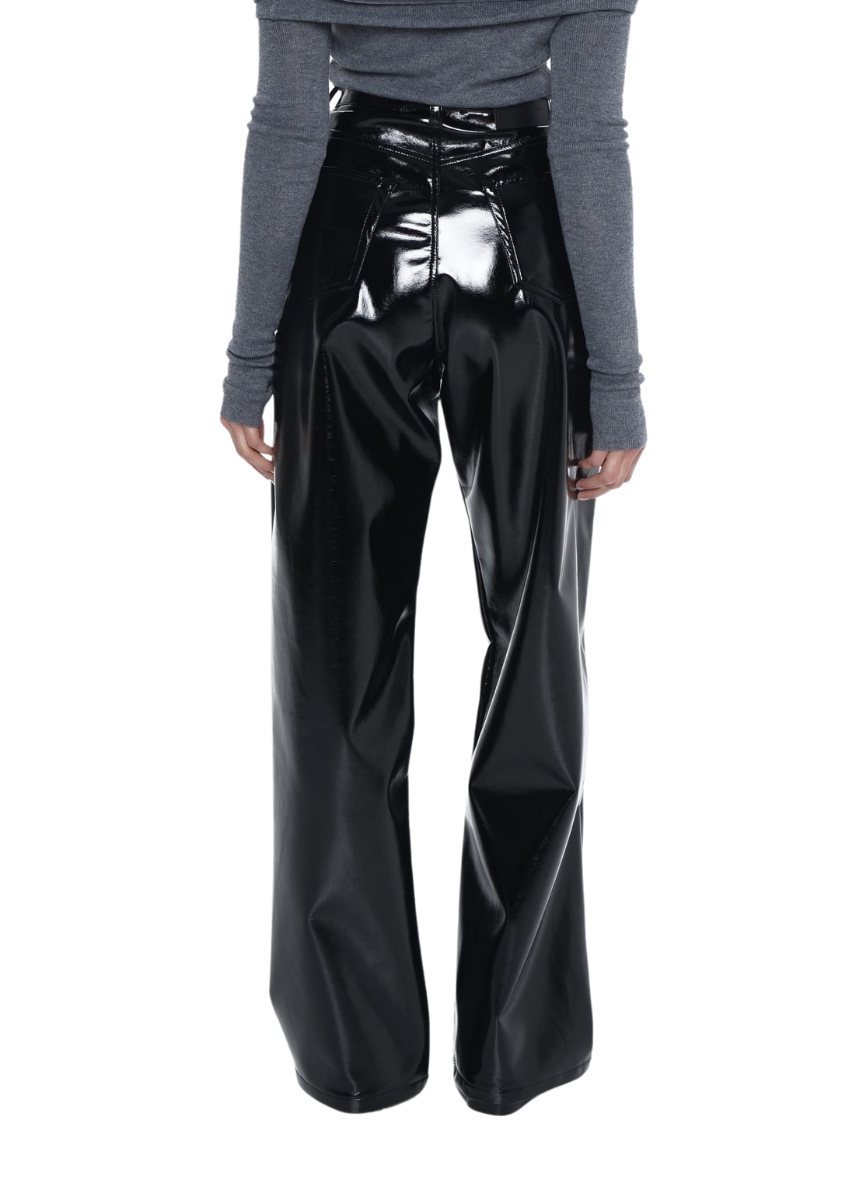 Γυναικείο ψηλόμεσο vinyl παντελόνι της SAC & CO με wide leg τελείωμα.