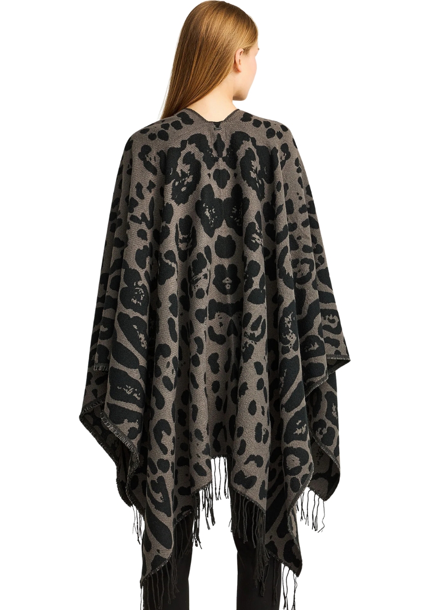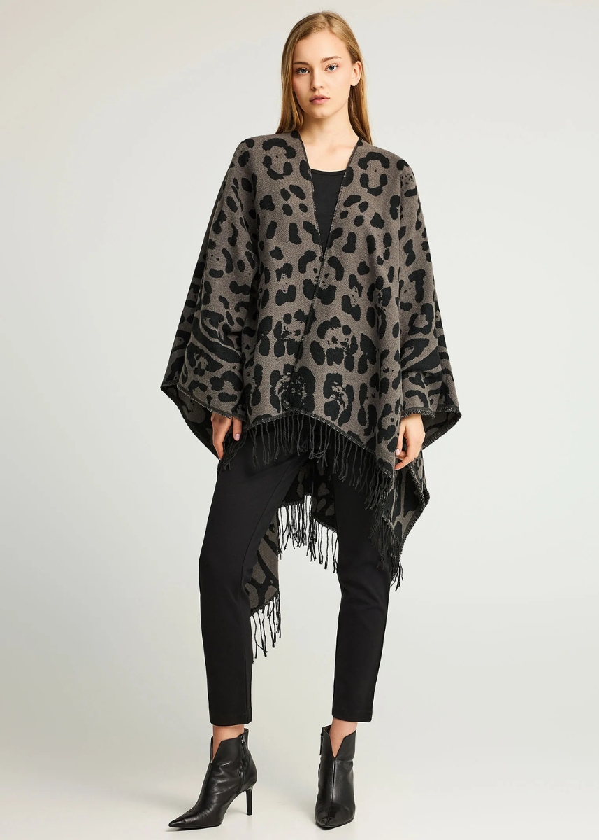 Γυναικεία κάπα Funky Buddha με animal print μοτίβο και κρόσσια.