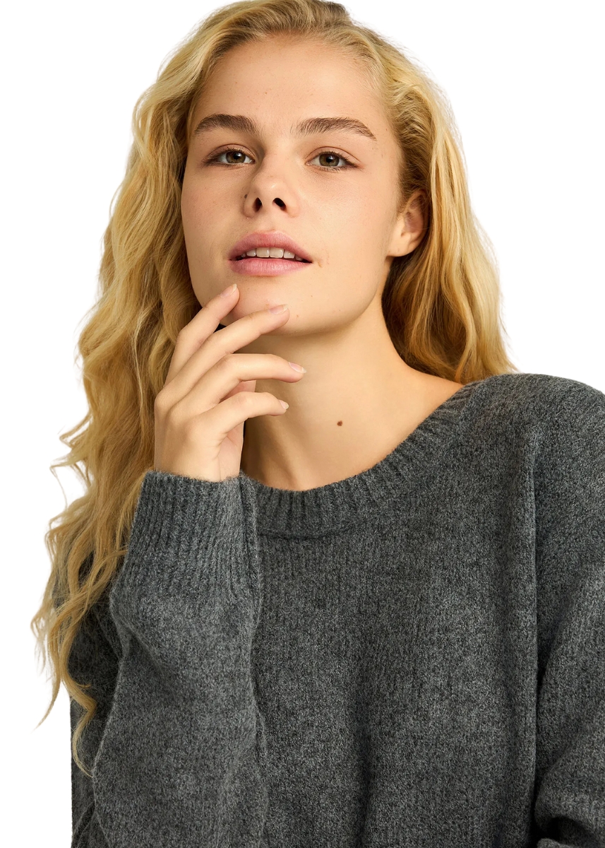 Αυτό το πλεκτό πουλόβερ FUNKY BUDDHA είναι η ιδανική επιλογή για άνετες και στιλάτες εμφανίσεις. Η χαλαρή γραμμή του και το ελαφρώς πιο κοντό μήκος του δημιουργούν μια μοντέρνα σιλουέτα, ενώ η μαλακή του πλέξη προσφέρει ζεστασιά. Τα rib τελειώματα στη στρογγυλή λαιμόκοψη, τις μανσέτες και το στρίφωμα ολοκληρώνουν το κλασικό design. Συνδύασέ το με μια ψηλόμεση φούστα ή το αγαπημένο σου τζιν για ένα casual chic look.